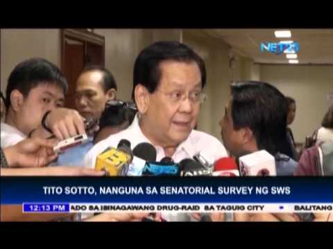 MANILA, Philippines – In the latest senatorial survey conducted by the Social Weather Station, Senator Tito Sotto took the lead with 52%, ahead by 3 points from Senator Ping Lacson who got 49%. (Eagle News Service Described by Jay Paul Carlos, Video Editing by Jericho Morales, Uploaded by MRFaith Bonalos)