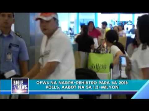 According to the Department of Foreign Affairs, the number of registered overseas voters reached 1. 3 million, with majority located in Middle East and Africa. (Eagle News Service Described by Jay Paul Carlos, Video Editing by Jericho Morales, Uploaded by MRFaith Bonalos) https://youtu.be/exjE0AfcNzo