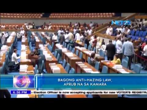 QUEZON City, Philippines (Eagle News) – The House of Representatives approved in its third and final reading, the new Anti-Hazing Law which prescribes heavier penalties against all forms of hazing. Valenzuela Representative Sherwin Gatchalian is the proponent of said law. (Eagle News Service Jay Paul Carlos, Jericho Morales, Vince Alvin Villarin)