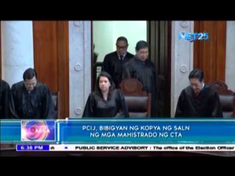 MANILA, Philippines (Eagle News) – The Supreme Court granted the request of the Philippine Center for Investigative Journalism to have a copy of the SALN of the justices of the Court of Tax Appeals. (Eagle News Service Jay Paul Carlos, Jericho Morales, Vince Alvin Villarin) https://youtu.be/SYgZh5fF9RE