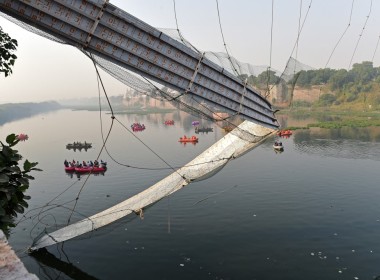 by Sam Panthaky Agence France-Presse MORBI, India (AFP) — At least 132 people died in India when a colonial-era pedestrian bridge overloaded with religious revelers collapsed into the river below, police said Monday. Authorities said nearly 500 people were celebrating a festival on and around the nearly 150-year-old suspension bridge in Morbi when supporting cables snapped after dark on Sunday. The structure in the western state of Gujarat crashed into the river, spilling scores of […]