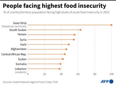 By Juliette MICHEL PARIS (AFP) – Food insecurity worsened around the world in 2023, with some 282 million people suffering from acute hunger due to conflicts, particularly in Gaza and Sudan, UN agencies and development groups said Wednesday. Extreme weather events and economic shocks also added to the number of those facing acute food insecurity, which grew by 24 million people compared with 2022, according to the latest global report on food crises from the […]
