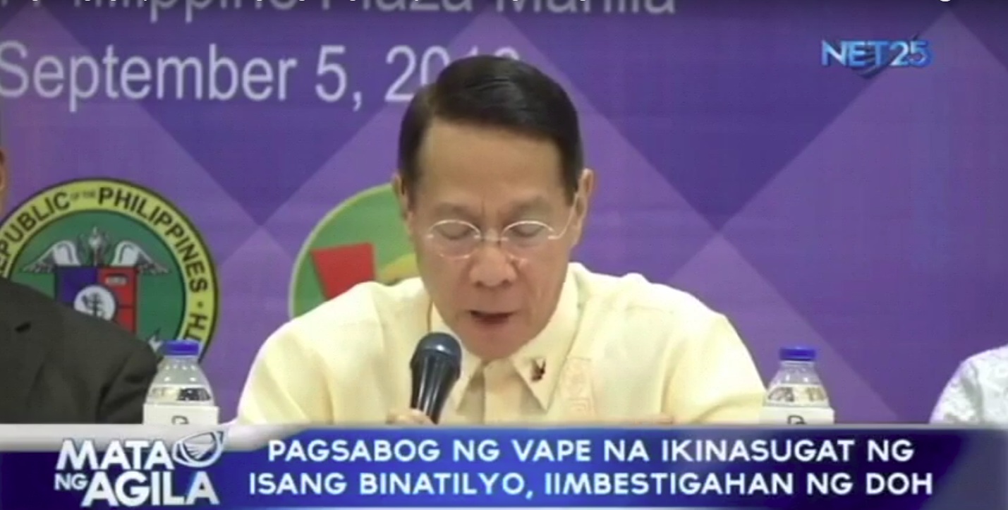 Ayon kay Health Secretary Francisco Duque, pupulungin niya ang mga opisyal ng Food and Drug Administration (FDA). Dapat aniyang malaman ang tunay na dahilan ng pagsabog at kung paano ni-re-regulate ang paggamit ng vape.