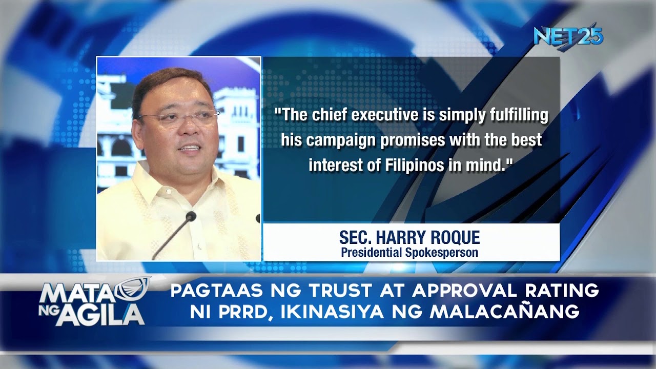 (Eagle News)– Nagpaabot ng pasasalamat ang Malakanyang sa publiko kaugnay ng pagtaas pa ng trust at approval rating ni Pangulong Rodrigo Duterte sa pinakahuling survey ng Pulse Asia.