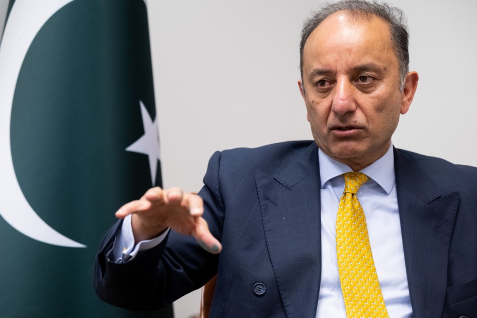 Pakistani Petroleum Minister Musadik Malik speaks during an interview with AFP at the Embassy of Pakistan in Washington, DC, on May 8, 2023. (Photo by SAUL LOEB / AFP)