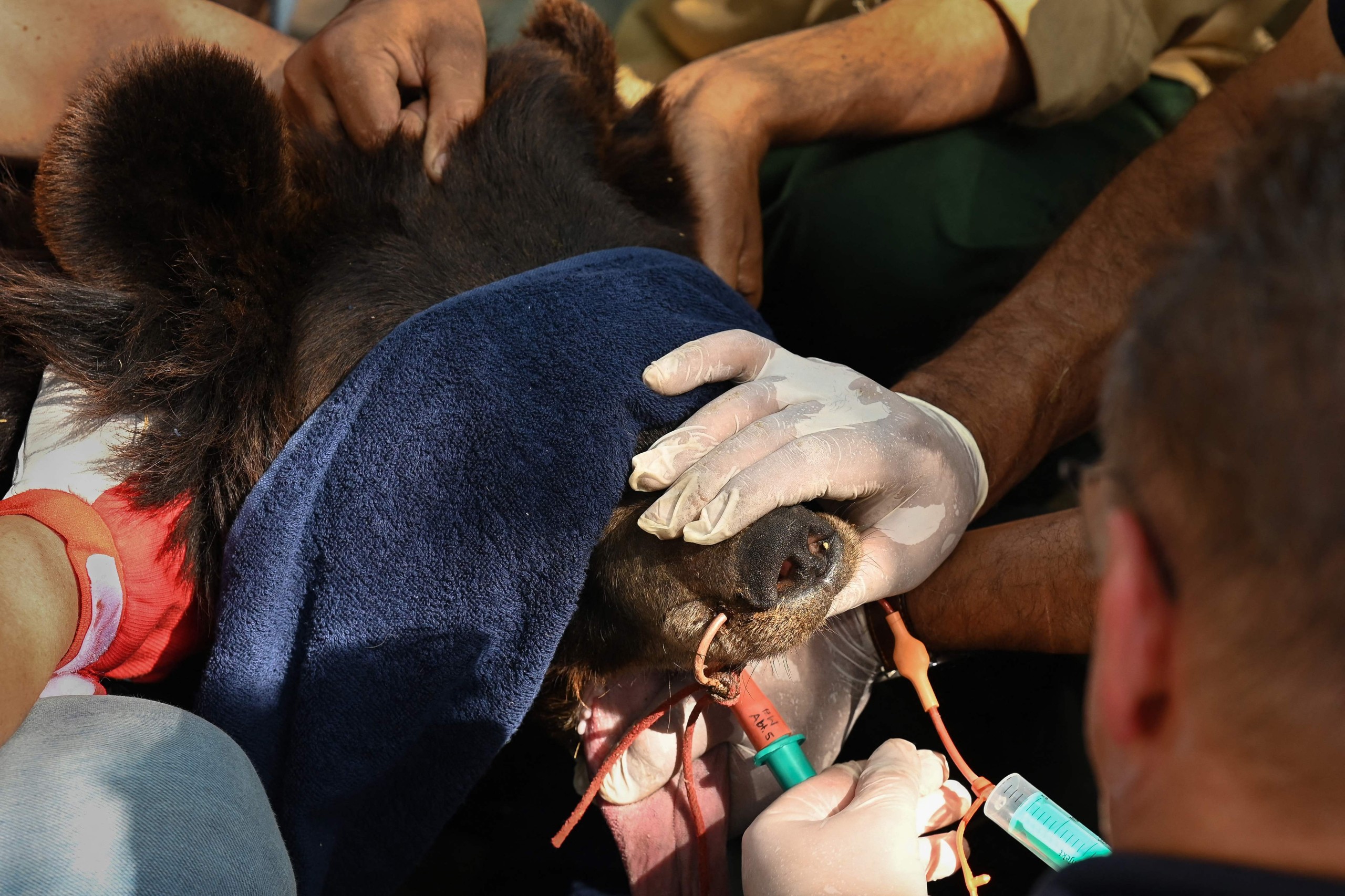 Vets from the Austria-based NGO had come to the centre to see after three black bears whose claws had been removed by their previous owners, treating them in the shadow of an abandoned Ferris wheel in the zoo’s former cafe — now a makeshift clinic.