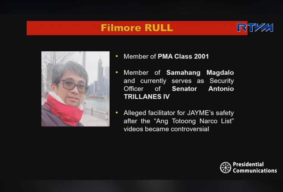 He also identified the links of Jayme to Liberal party, the Magdalo group and some Otso Diretso candidates including Gary Alejano, Florin Hilbay, Bam Aquino and Mar Roxas.