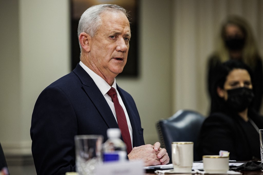 Israeli Minister of Defense Benny Gantz meets with US Secretary of Defense Lloyd Austin (not in frame) at the Pentagon the Pentagon in Washington, DC, on December 9, 2021. (Photo by Samuel Corum / AFP)