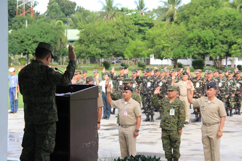 DAVAO CITY (Eagle News) – Nakipag-kaisa ang Eastern Mindanao Command (EMC) sa commemoration ng Human Rights Consciousness Week 2016 sa pamamagitan ng recitation ng “Panata sa Karapatang Pantao” ng lahat ng military personnel ng EMC at Naval Forces Eastern Mindanao (NFEM) na isinagawa sa Naval Station Felix Apolinario, Camp Panacan, noong Lunes ng umaga, December 5.