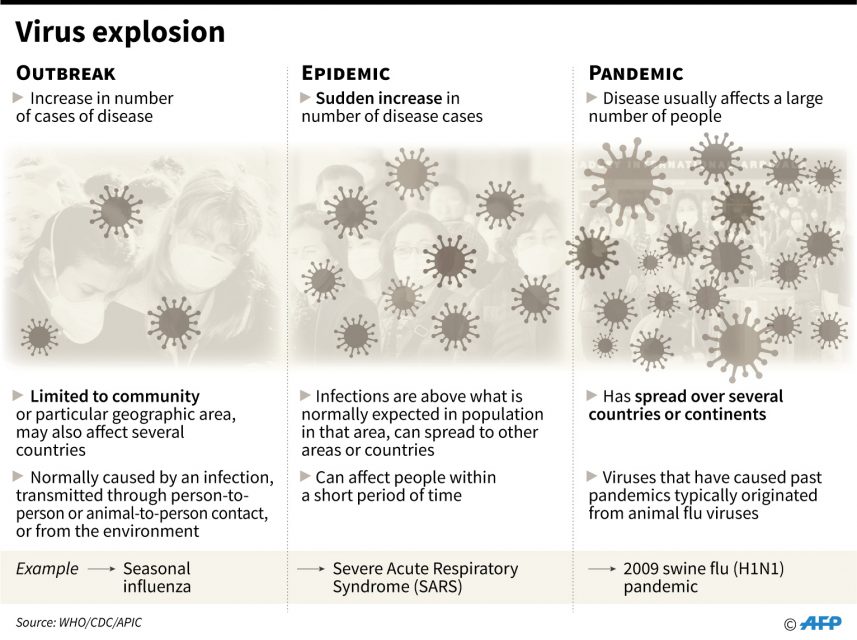 PARIS, France (AFP) — When does an epidemic become a pandemic? As the novel coronavirus continues its spread across the globe, what does the designation mean to world healthcare systems as they try to rein in the deadly disease?