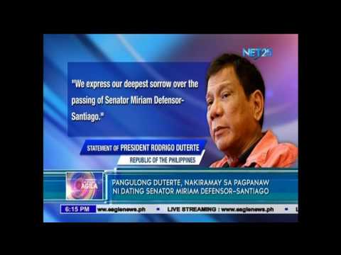 Ipinarating ni Pangulong Rodrigo Duterte ang pakikiramay sa pagpanaw ni Senadora Miriam Defensor Santiago.