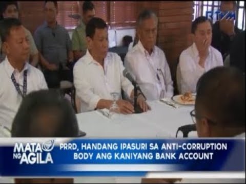 Sa panunumpa ng mga miyembro ng Presidential Anti-Corruption Commission (PACC) nagpahayag ng kahandaan si Pangulong Duterte na ipasuri sa anti-corruption body na kanyang binuo noong nakaraang taon ang kanyang mga bank account.