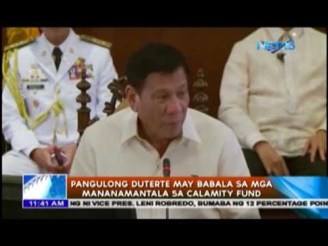 (Eagle News) — Binalaan ni Pangulong Rodrigo Duterte ang mga opisyal ng pamahalaan sa Bicol na mananamantala sa calamity fund. Ayon sa Pangulo siya mismo ang susundo sa mga tiwaling opisyal gamit ang chopper at dadalhin sa Maynila at saka ilalaglag.