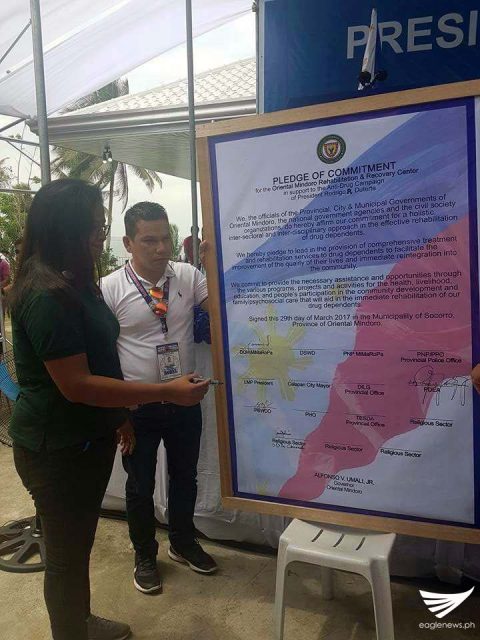 Iprinisinta naman ni Oriental Mindoro Governor Alfonso Umali, Jr. ang isang Pledge of Commitment para sa Oriental Mindoro Rehabilitation and Recovery Center. Ito ay nilagdaan ng iba’t ibang stakeholders bilang pagsuporta sa anti-drug campaign ng administrasyon.