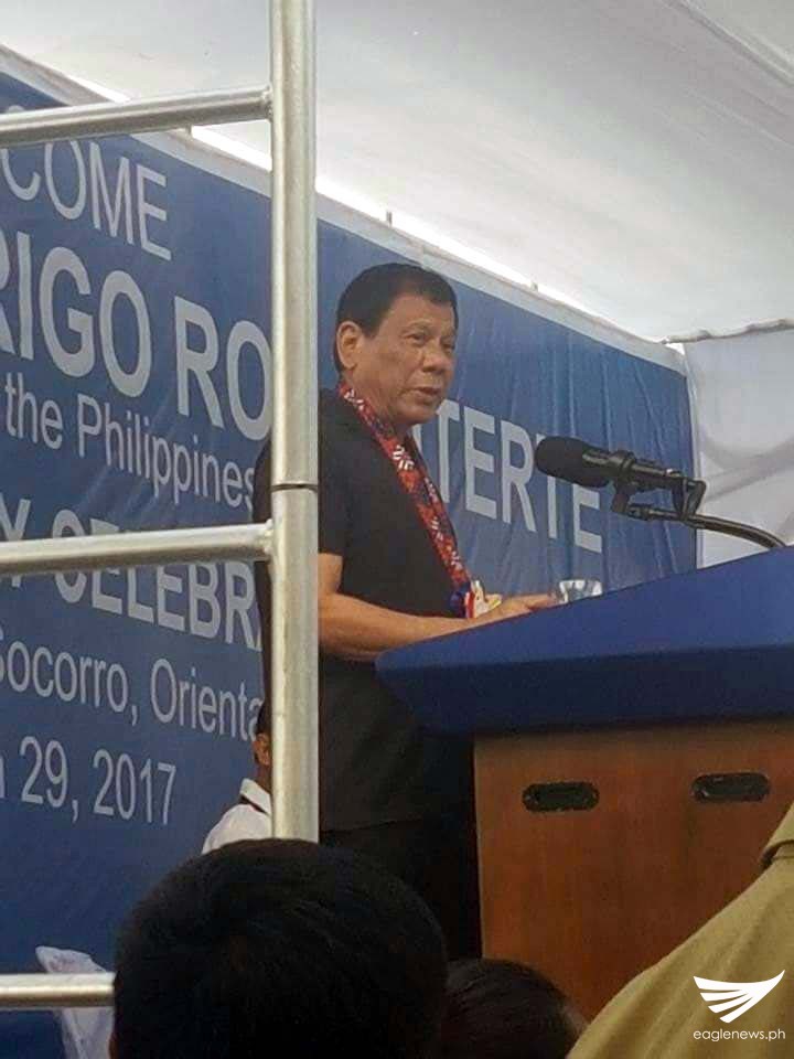 SOCORRO, Oriental Mindoro (Eagle News) – Pinasalamatan ni Pangulong Rodrigo Duterte ang mamamayan sa Bayan ng Socorro, Oriental Mindoro sa patuloy na pagsuporta sa kaniya. Sinabi ito ng Pangulo sa kaniyang naging pagbisita sa nasabing lugar noong Miyerkules, March 29 sa isinagawang People’s Day Celebration sa Brgy. Batong Dalig, Socorro, Oriental Mindoro.