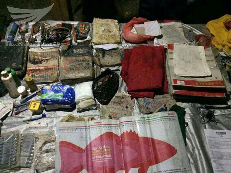 Dalawang M16 rifle, tatlong gauge shotgun, ammos, IED components, mga damit at gamot ang narecover ng 18th Special Forces Company ng Philippine Army sa bulubunduking bahagi ng Sitio Arib Barangay Culasian, Rizal, Palawan.
