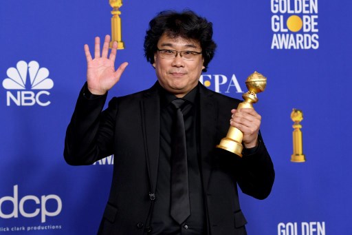 BEVERLY HILLS, CALIFORNIA – JANUARY 05: Bong Joon-ho poses in the press room with award for Best Motion Picture – Foreign Language for “Parasite” during the 77th Annual Golden Globe Awards at The Beverly Hilton Hotel on January 05, 2020 in Beverly Hills, California. Kevin Winter/Getty Images/AFP