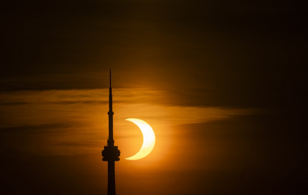 However, those with maximum visibility — and the necessary protective eyewear — would have seen the moon’s silhouette ringed by the sun for a few minutes of the two-hour event.