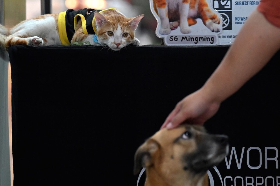 Instead, he prefers to sleep, laze in front of the nearby Starbucks or chase balls across the tiled floor, much to the delight of passers-by.
