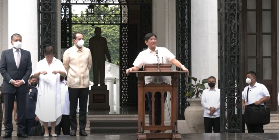 (Eagle News) – President Ferdinand Marcos Jr attended his first flag-raising ceremony in Malacanang, on Monday, July 4, saying he wanted to start things right and promised to have a very good working relationshiop with the Palace employees.