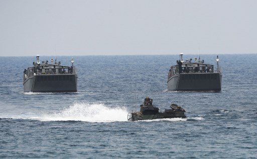 The US and Philippine militaries launched major exercises on May 7 aimed at fighting global terrorism, while staying mostly quiet on Beijing’s reported installation of missiles in the disputed South China Sea. / AFP PHOTO
