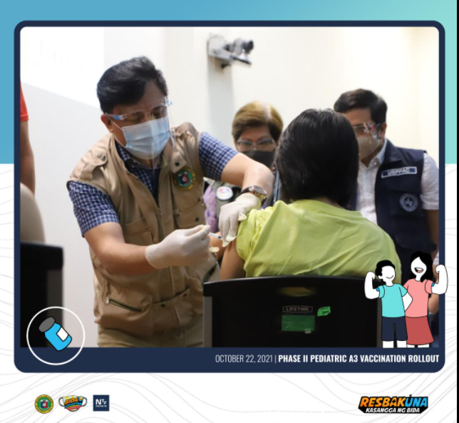 The start of the Phase 2 implementation of the pediatric A3 vaccination was marked through a ceremonial vaccination in three hospitals — Cardinal Santos Medical Center, Ospital ng Paranaque and Quezon City General Hospital.