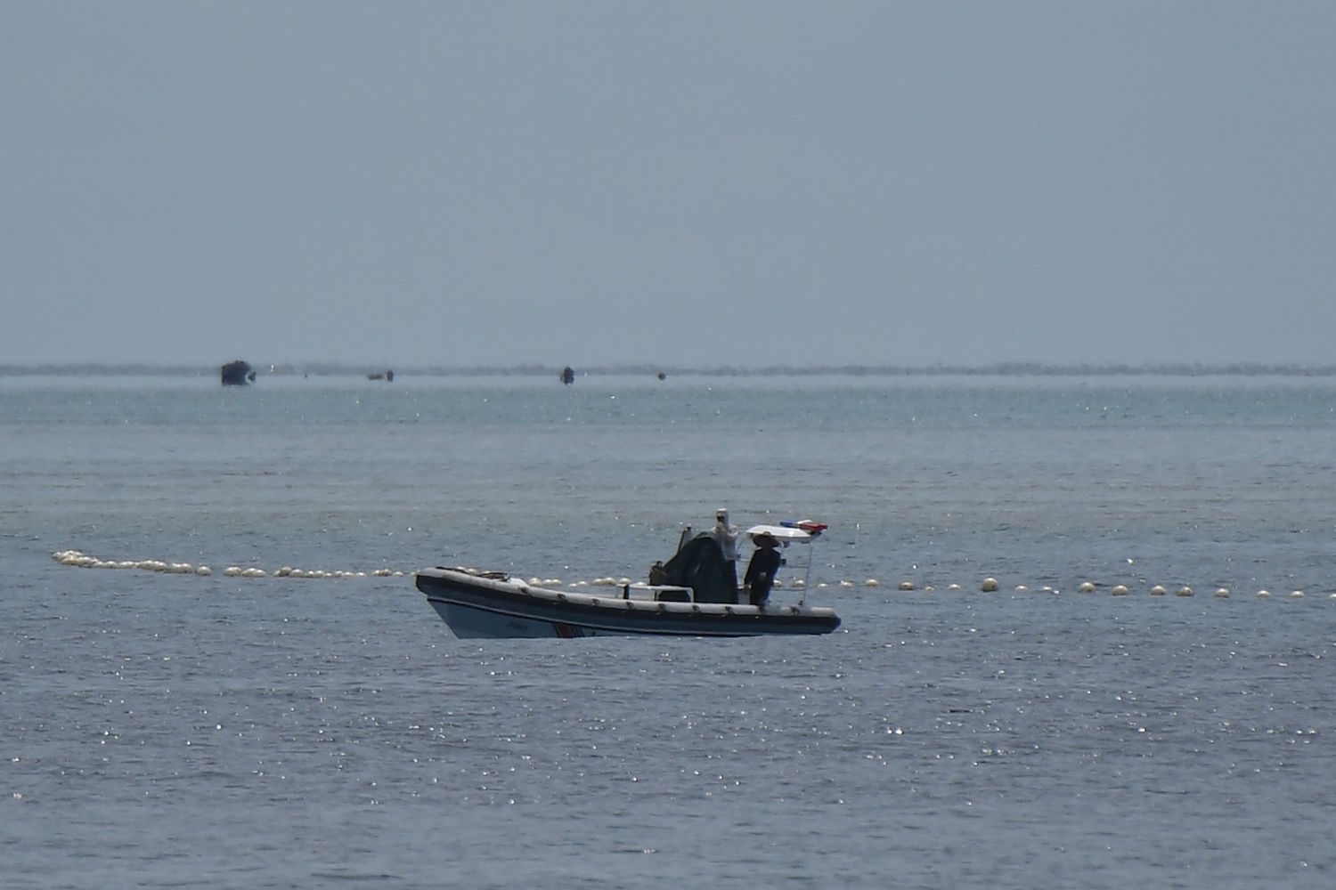 The floating barrier prevents fishing boats from entering the shoal’s shallow waters where fish are more abundant.
