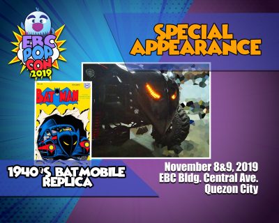 On November 8-9, the Eagle Broadcasting Corporation (EBC) Building will be transformed as a pop culture show center that will house comic books, toys, games, anime displays, cartoon characters, cosplay, fun entertainment and other interests. A 1940s Batmobile replica and life-size statues will also be on display at the EBC grounds.