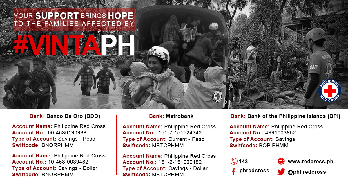 PRC Chairman Senator Richard Gordon made the appeal as figures on the number of deaths and missing people from the flashfloods and landslides that struck parts of Mindanao continue to rise in the wake of ‘Vinta’.