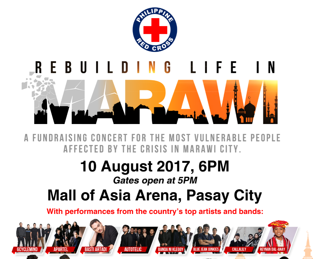 The country’s top bands, singers, and celebrities committed to perform on stage for free to support PRC’s humanitarian efforts for Marawi.