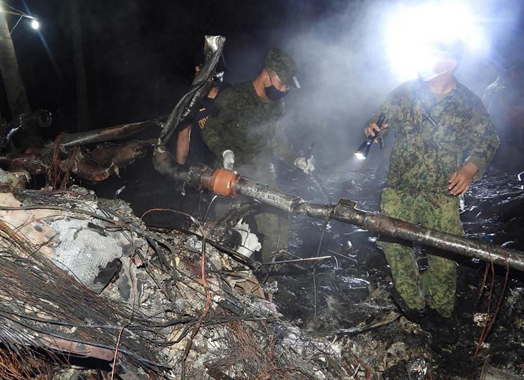 The C-130 Hercules transport plane was carrying 96 people, mostly fresh army graduates, when it overshot the runway on Sunday while trying to land on Jolo island in the southern Sulu province.