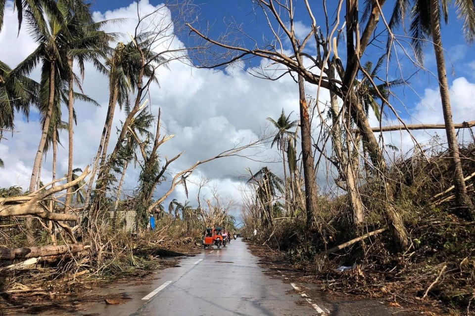 “SOS” has been painted on a road in the tourist town of General Luna on Siargao Island, where surfers and holidaymakers had flocked ahead of Christmas, as people struggled to find water and food.