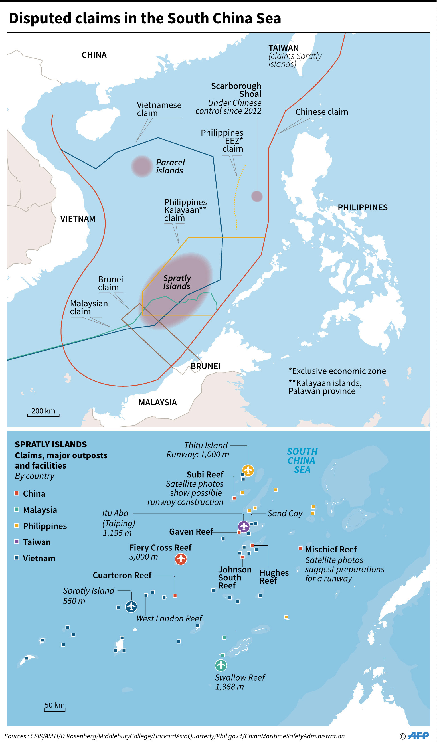 China has in recent years undertaken giant land reclamation works in the Spratlys archipelago, one of the biggest island groups in the sea which partly falls within the Philippines’ exclusive economic zone.