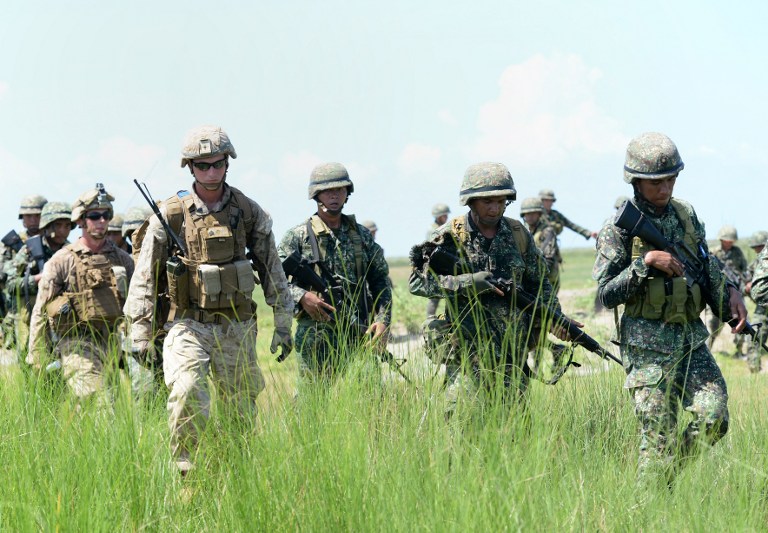 The Philippines and the United States launch war games later on October 4, 2016 against the unusual threat of US forces being ejected from the Southeast Asian nation as its firebrand leader pivots to China. / AFP PHOTO / TED ALJIBE