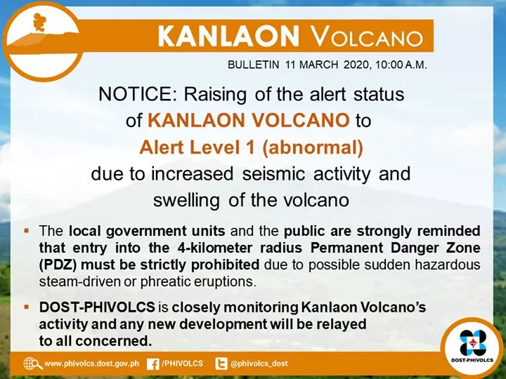 (Eagle News)–The Philippine Institute of Volcanology and Seismology has raised an alert level 1 over Mt. Kanlaon due to what it said was increased seismic activity and the swelling of the volcano.