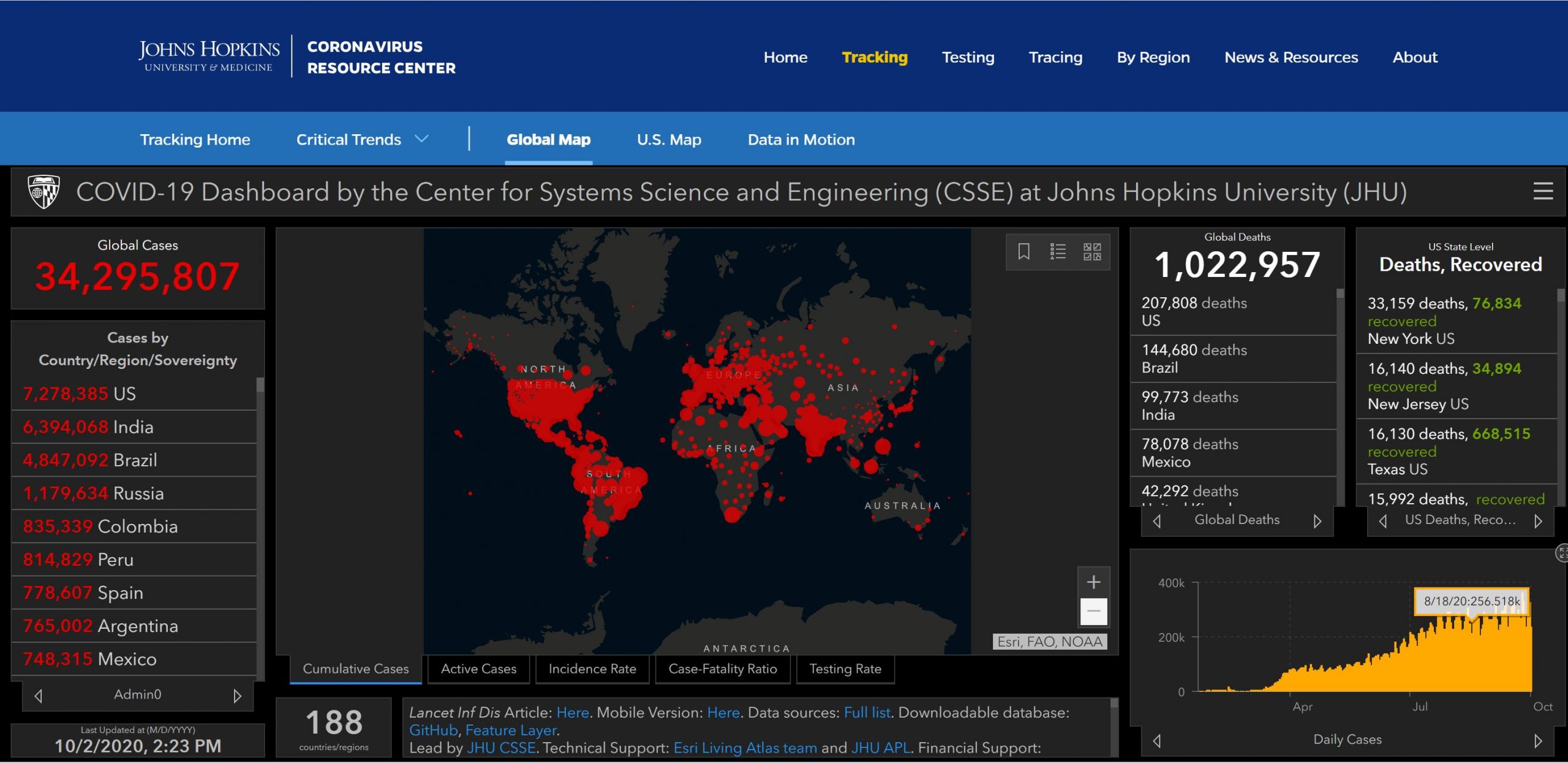 Worldwide, COVID-19 cases reached 34,295,807, while COVID-19 deaths reached 1,022,957.