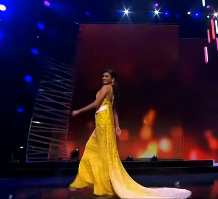 (Eagle News) — The Philippines’ Miss Universe bet Rabiya Mateo stunned the audience in the pageant preliminaries with her yellow evening gown number, and national costume that showed style as well as the Philippine colors.