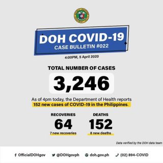 This was after the Department of Health recorded 152 other cases as of Sunday, April 5.