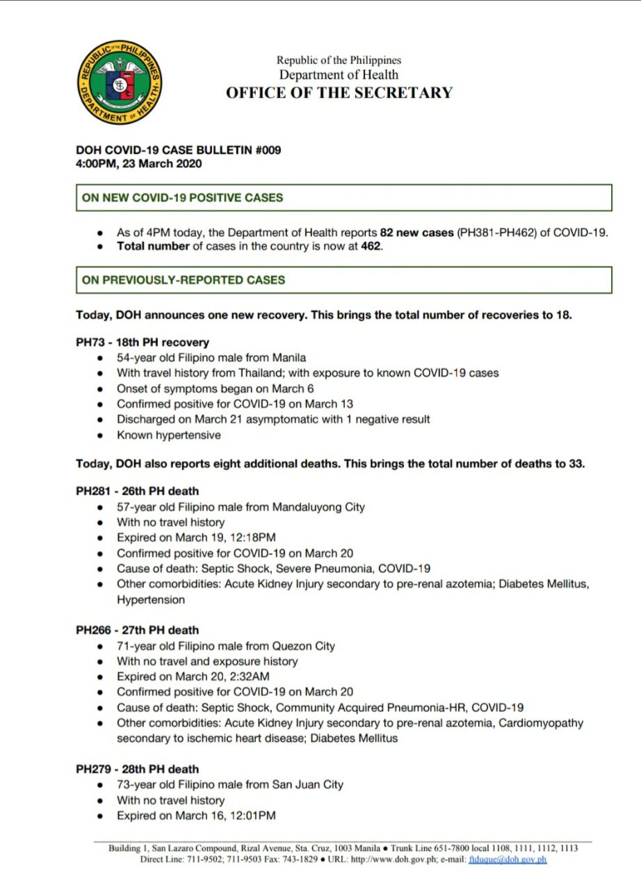 The Department of Health said this was as of 4 p.m. today, March 23, after the agency recorded 82 new cases.