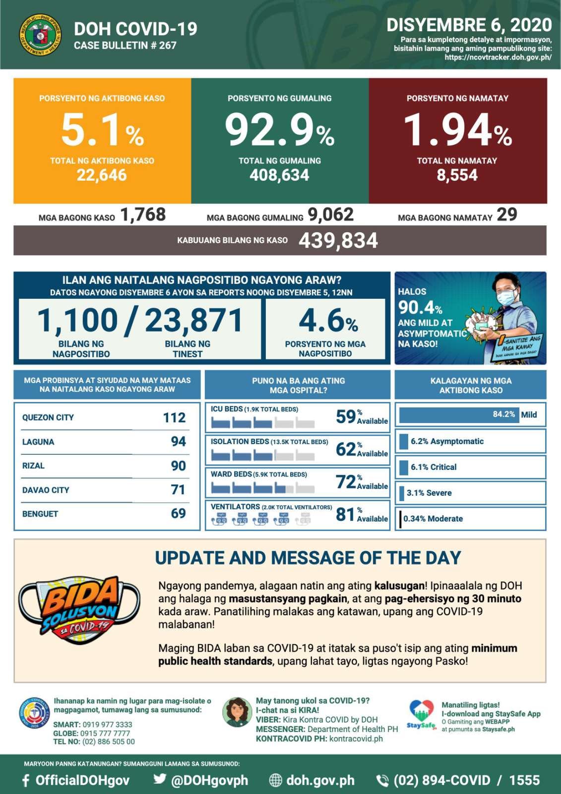 (Eagle News) — COVID-19 cases in the country breached the 439,000 mark on Sunday, Dec. 6, after the Department of Health reported 1768 additional cases.