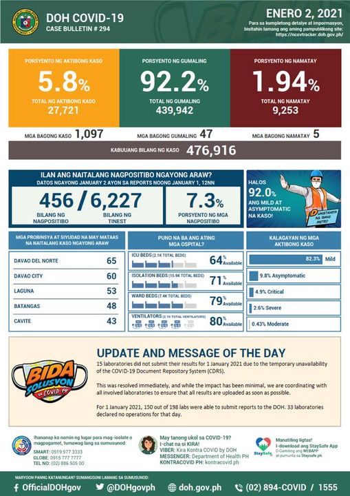 (Eagle News) — COVID-19 cases in the country breached the 476,000 mark on Saturday, January 2, after the Department of Health reported 1097 additional cases.