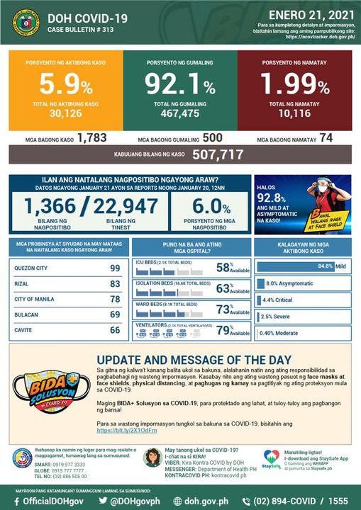 (Eagle News) — COVID-19 cases in the country breached the 507,000 mark on Thursday, Jan. 21, after the Department of Health reported 1783 additional cases.