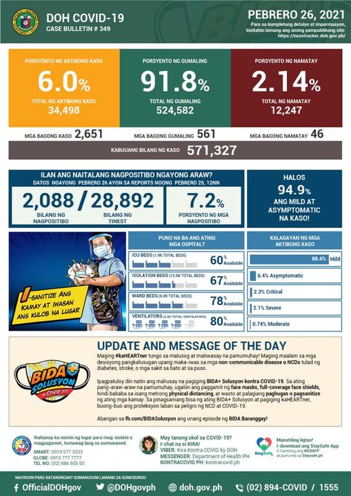 (Eagle News) — COVID-19 cases in the Philippines breached the 571,000 mark on Friday, Feb. 26, after the Department of Health reported 2,651 additional cases.