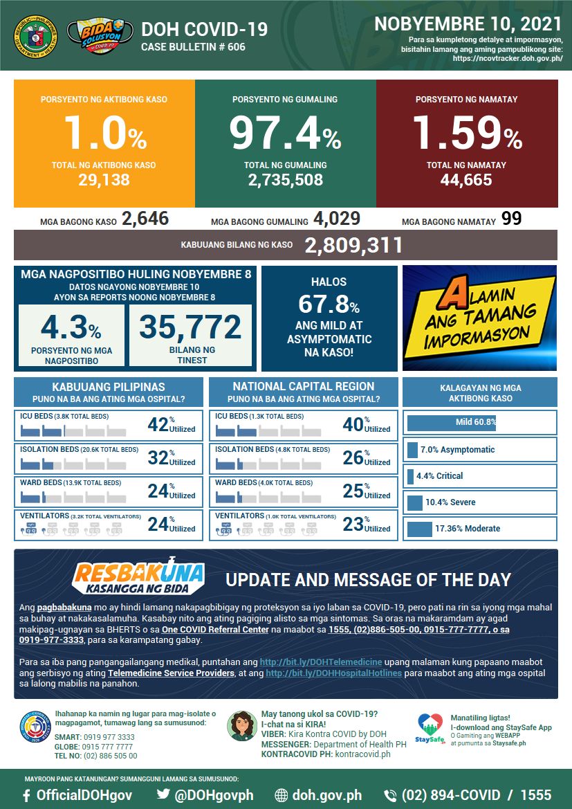 (Eagle News) — COVID-19 cases in the Philippines rose to 2,809,311 after the Department of Health reported 2,646 additional cases.