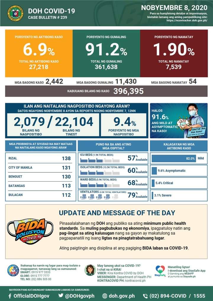 (Eagle News(–COVID-19 cases in the country breached the 396,000 mark on Sunday, Nov. 8, after the Department of Health reported over 2000 additional cases.