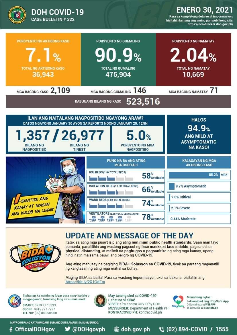 (Eagle News)–COVID-19 cases in the country reached 523,516 after the Department of Health reported 2109 additional cases.