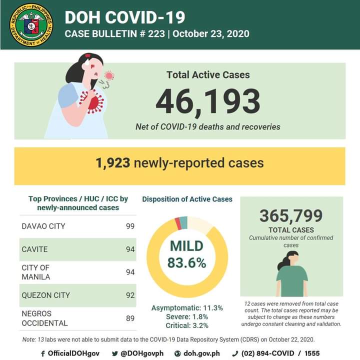 (Eagle News)–COVID-19 cases in the country breached the 365,000 mark on Friday, Oct. 23, after the Department of Health reported almost 2000 additional cases.