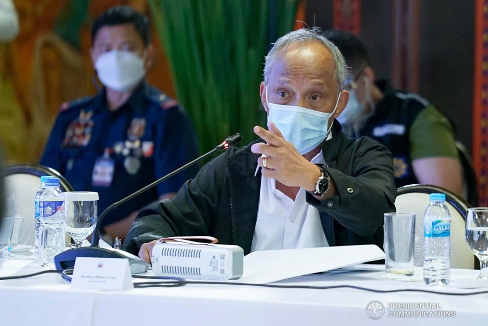 Energy Secretary Alfonso Cusi gives an update to President Rodrigo Roa Duterte on the power and oil crisis situation in Typhoon Odette-battered areas during a meeting with key government officials at the Malacañan Palace on December 27, 2021. KING RODRIGUEZ/ PRESIDENTIAL PHOTO