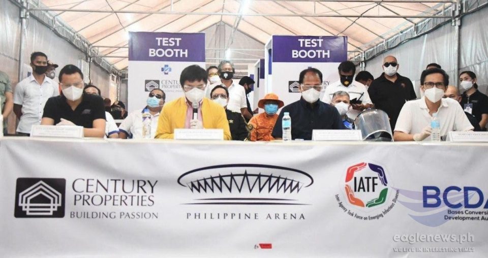 The government officials again thanked the Iglesia Ni Cristo (Church Of Christ) for allowing the use of the Ciudad de Victoria compound, including the 20,000 seater Philippine Sports Stadium, as a mega swabbing facility.