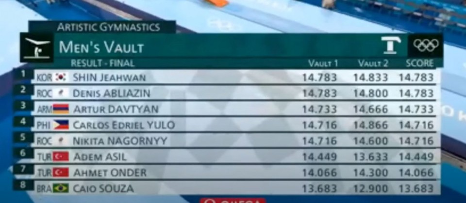 The Filipino gymnast still made the Philippines proud as he tied at fourth place in the vault finals, along with Russian gymnast Nikita Nagornyy who was the 2019 World All-Around Champion and the 2020 Olympic and 2018 World All-Around bronze medalist. Nagornyy was also an eight-time European gold medalist and a three-time Youth Olympic champion.